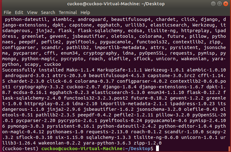 (cuckoo-test) $ pip install -U cuckoo