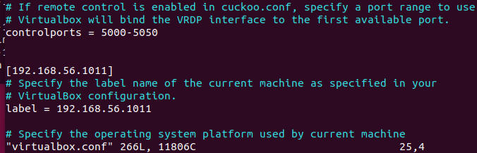 vim /home/cuckoo/.cuckoo/conf/virtualbox.conf