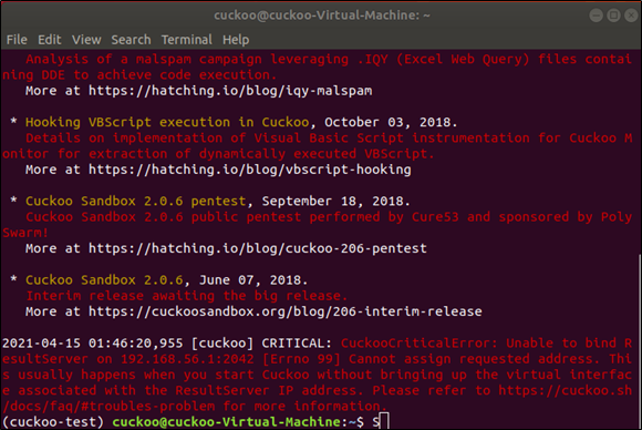 Cuckoo Sandbox Setup for People in a Hurry (hatching.io)