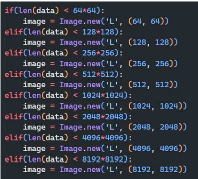 예를 들어 데이터(샘플)의 길이가 64x64보다 작다면 64x64의 크기로, 데이터의 길이가 2048x2048보다 크지만 4096x4096보다 작다면 4096*4096의 크기로 이미지를 만들었다.