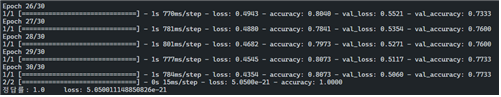 학습 정확도가 높지만 정답률은 낮게 나온 상황인데 이유는 잘 모르겠다.